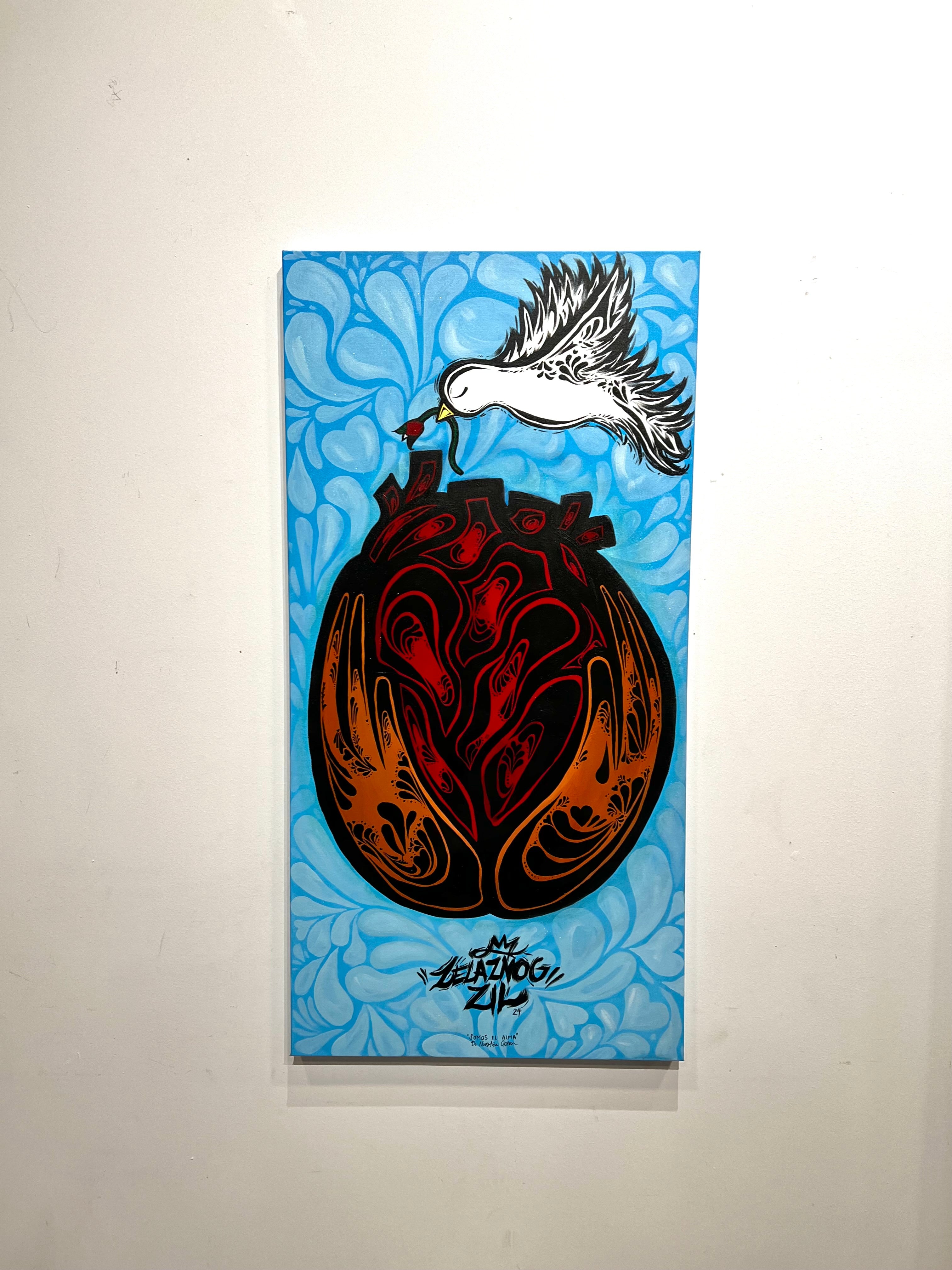 Born in Kansas City and raised in both her hometown and Ciudad Juárez, Chihuahua, Liz Gonzalez, also known as Zelaznogzil, is an artist whose journey of self-discovery inspires her work. Her art reflects a transformation of pain into power and silence into vibrant expressions, inspired by the belief in "maktub"—that her journey was written for her. Through every piece, Zelaznogzil celebrates the beauty of existence and aims to spread joy and hope to all who encounter her work.Growing up between two cultures, her turbulent upbringing inspired a deep connection to art, which became her refuge and voice when words failed. As a proud Chicana, she weaves themes of resilience, cultural identity, and self-realization into every piece, infusing her creations with profound emotion and meaning.